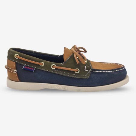Sebago Portland JIB Navy Papyrus Cuoio Shoes available at LRS Online- Side Front View